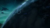 Équipé d'une porte des étoiles spatiale, ce monde aux conditions de vie favorables abritait à sa surface un vaisseau-ruche en hibernation à quelques kilomètres au pied d'une chaîne de montagnes. Toutefois, au fil des siècles, la végétation locale recouvrit peu à peu le vaisseau jusqu'à ce que celui-ci se fonde dans le paysage de ce monde.