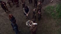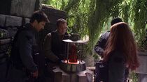 Quelque temps plus tard, le docteur McKay finit par découvrir que l'E2PZ de M7G-677 ne fonctionnait uniquement qu'en tandem que le générateur de champ électromagnétique et que son énergie était inexploitable pour la cité d'Atlantis. Bien que l'E2PZ fut quasiment à plat, le docteur Weir lui ordonna de retourner sur ce monde avec le lieutenant Ford et de rebrancher le générateur de champ avant le retour des Wraiths. Néanmoins, entre-temps, au cours de la cérémonie de purification de Keras, le major Sheppard remarqua avec stupeur qu'une balise de localisation wraith s'était activée suite à la coupure du champ électromagnétique. Alors qu'il détruisit le bracelet avec son pistolet M9 et interrompit le signal, son action provoqua la colère d'Aries, l'un des aînés du village, ainsi que des autres habitants.