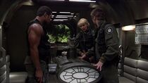 Néanmoins, peu de temps après, l'archéologue terrien contacta ses coéquipiers par radio pour les informer que les inscriptions étaient en réalité des archives historiques compilées de la planète et gravées il y a moins de 200 ans par un Ancien qui avait voyagé à travers le temps à bord d'un petit vaisseau. Il leur apprit que ce voyageur avait abandonné la machine temporelle sur ce monde et les convainquit de partir à la recherche du dispositif dans la forêt. Ainsi, au bout de plusieurs heures de recherche, SG-1 finit alors par retrouver un Jumper similaire à ceux présents sur Atlantis, muni d'un module temporel. Toutefois, étant incapable de le faire fonctionner, ils décidèrent de demander l'aide du général O'Neill afin de le piloter grâce à son gène ATA et de le rapporter sur Terre par la porte des étoiles.