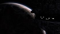 À noter que vue depuis l'espace, ce monde aux conditions de vie favorables ne semble pas être couvert de grandes d'eau, mais présente un unique continent verdoyant.
