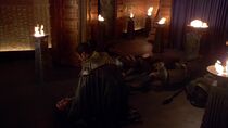 Après s'être fait capturer près de la porte des étoiles, Teal'c et M'zel furent emmenés devant Zarin par les Jaffas à son service et celle-ci les interrogea sur leur présence sur ce monde goa'uld. Teal'c et M'Zel lui demandèrent des explications sur l'attaque de P4S-161, néanmoins, elle ne put leur révéler aucune information, n'étant pas au courant de cette attaque.