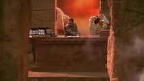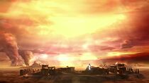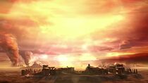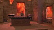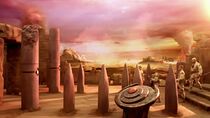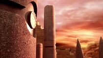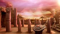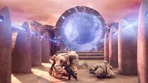 Situés au sein d'une immense plaine dénudée de toute végétation, les vestiges de l'ancien temple entourent la porte des étoiles locale et semblent faire partie d'un groupe de bâtiments plus importants. De plus, on peut apercevoir à l'horizon lointain d'immenses colonnes de poussières, sans doute provoquées par des tornades ou des éruptions volcaniques.