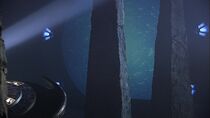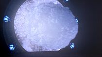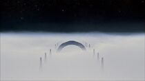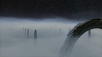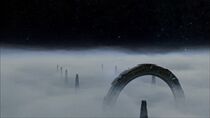 La porte des étoiles locale est située au sein d'une immense plaine dépourvue d'un quelque relief et recouverte par un épais brouillard blanc, n'offrant qu'une visibilité limitée à une dizaine de mètres pour les explorateurs. La porte des étoiles est entourée de deux rangées de piliers qui semblent être les seules constructions à la surface de ce monde.