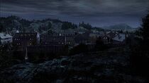 Un village fortifié et richement décoré est situé au cœur d'une vallée densément boisée et entouré de hautes collines verdoyantes. La porte des étoiles locale semble être installée à l'écart du village, au-delà des remparts protégeant la cité des agressions extérieures.