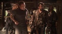 Pendant ce temps, alors que plusieurs prisonniers revinrent en direction du Jumper, le colonel Sheppard, Ronon et Teyla essayèrent de les arrêter avant d'être de nouveau capturés par Torrell et ses hommes. Toutefois, au moment où le lieutenant-colonel Sheppard tenta de convaincre le chef des prisonniers de laisser son équipe composer une adresse pour s'échapper de l'île, un croiseur wraith se dirigea vers leur position et survola la zone de la porte des étoiles. Incapable de composer une adresse sur le DHD, Sheppard ordonna alors à McKay de détourner l'énergie restante du Jumper vers le système d'armement, permettant à l'équipe d'envoyer un drone qui endommagea sérieusement le croiseur ennemi.