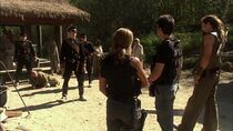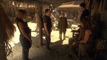 Quelque temps plus tard, les membres de l'équipe du lieutenant-colonel Sheppard furent chargés d'effectuer une mission d'exploration sur ce monde et firent la rencontre d'Eldred, le chef d'un village primitif, qui leur apprit que son peuple se préparait à offrir une partie de leur récolte aux habitants de la « Tour ». Ignorant l'existence de cet édifice, Eldred conduisit le colonel Sheppard et ses hommes au sommet d'une colline depuis laquelle ces derniers furent stupéfaits de découvrir une tour semblable à la flèche centrale de la cité d'Atlantis surgissant de la surface de cette planète. Alors que le colonel Sheppard demanda à Eldred la possibilité de rencontrer le Seigneur protecteur, le docteur McKay se rendit près de la Tour en compagnie de Baldric afin de scanner les alentours de l'édifice lantien.