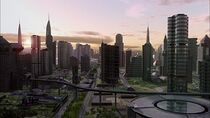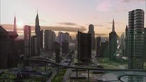 Une immense ville, composée notamment de gratte-ciel et de monorails, est construite à la surface de ce monde et est probablement habitée par une population de plusieurs millions de Galaris. On peut supposer que la porte des étoiles se situe dans l'un des bâtiments de cette magnifique cité urbaine, ainsi que le laboratoire des docteurs Varrick, Marell et Amuro.