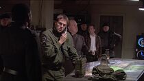 Plus tard, le colonel Carter étudia les plans du satellite ori récupérés par les espions calédoniens et découvrit que celui-ci n'était pas autonome, mais était contrôlé depuis un poste de commandement situé au sein d'un bunker puissamment gardé du Protectorat de Rand. De plus, elle réalisa que ce champ de force de l'arme était très énergivore, et n'était activé qu'en cas de danger, et le colonel Mitchell proposa de la détruire après avoir neutralisé le bunker de commandant. Alors que la présidente Chaska ajouta que le bâtiment était impénétrable, le colonel Carter suggéra d'interrompre temporairement la liaison radio entre la base et le satellite à l'aide d'une impulsion électromagnétique engendrée par l'explosion d'un compensateur inertiel d'un F-302 fixé sur un missile calédonien, lui-même muni d'un brouilleur de radar.