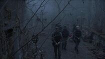 Peu de temps après, les membres de l'équipe SG-1, accompagnés du lieutenant Ackerman, parcoururent la forêt entourant le village et parvinrent à trouver l'entrée de la caverne de la fée Morgane. Néanmoins, n'ayant découvert aucun indice permettant de retrouver l'arme de Merlin, ces derniers décidèrent de revenir au village avant la tombée de la nuit.