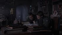 Pendant ce temps, le docteur Jackson trouva à l'intérieur d'un des bâtiments les archives du village, et commença à les étudier à la recherche de nouvelles informations sur le lieu où serait cachée l'arme de Merlin. Bien qu'il ne découvrit aucun indice à propos de cette arme, ou encore sur les raisons de la disparition des habitants du village, il apprit néanmoins que, selon une légende locale, une caverne proche du village aurait servi de cachette à la fée Morgane. Il supposa alors que cette dernière avait elle aussi réalisé l'Ascension, mais qu'en tant que rivale de Merlin, Morgane aurait dérobé l'arme anti-ori inventée par ce dernier pour la cacher sur l'un des trois mondes visités par Arthur dans la prophétie.