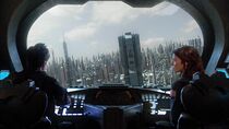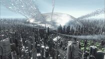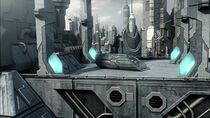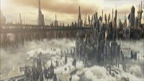 Cette magnifique cité de conception lantienne semble s'étendre à perte de vue à la surface de la planète Asuras et est constituée d'innombrables gratte-ciel semblables à ceux de la cité d'Atlantis.