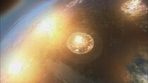 Néanmoins, lorsque le colonel Carter réalisa alors que le sol autour de la masse réplicateur était riche en neutronium, le docteur McKay modifia les paramètres afin que cette dernière soit aspirée vers le noyau de la planète. Quelques instants plus tard, alors que les membres de l'équipe et les vaisseaux de la coalition fuirent au plus vite l'orbite de ce monde et passèrent en hyperespace, la planète-mère des Réplicateurs devint de plus en plus instable et entièrement pulvérisée quelques instants plus tard dans une gigantesque explosion.