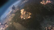 À noter que vue depuis l'espace, la planète Asuras semblait posséder un immense continent verdoyant, ainsi que de grandes étendues d'eau.