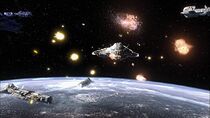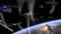 Cependant, plusieurs mois après la découverte de la planète Asuras, les membres de l'expédition Atlantis découvrirent que les Réplicateurs construisirent une importante flotte de vaisseaux-mères de classe Aurore dans le but d'attaquer la Terre. Ainsi, une frappe préventive fut lancée par l'équipage de l'Apollo et une bombe abritant six ogives nucléaires mark IV fut envoyée à la surface de cette planète.