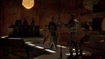 Cependant, alors que Carter commençait à consulter l'ordinateur goa'uld, de nombreux Jaffas au service de Qetesh se téléportèrent dans la base à l'aide des anneaux de transport et furent tués au fur à mesure de leur arrivée par Teal'c et les autres membres de SG-1. Néanmoins, au moment où le colonel Carter parvenait à découvrir une éruption solaire capable de renvoyer l'équipe en 1929, le docteur Jackson ainsi que les deux Jaffas au service de Teal'c furent tués par des tirs de lances goa'uld.