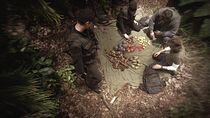 Tout comme le premier équipage du Destinée, lorsque le vaisseau Ancien sortit de VSL, la porte des étoiles s'activa et l'équipe envoya un Kino en éclaireur à travers l'horizon des événements sur cette planète jungle. Le lieutenant Scott, le sergent Greer, Eli et le docteur Rush voyagèrent sur ce monde en mission de reconnaissance. Cependant, ils furent surpris de découvrir sur le sol un autre Kino, dont la mémoire vidéo était pleine, et que personne n'avait envoyé. Rush quant à lui découvrit le squelette d'un homme un peu plus loin.