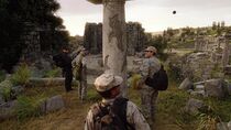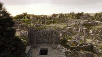 Bien qu'inhabitée à première vue, cette planète possède à sa surface les ruines d'une ville appartenant à une civilisation probablement disparue depuis plusieurs siècles. Ces vestiges antiques s'étendent sur plusieurs kilomètres et sont éparpillés au milieu d'une grande plaine herbeuse légèrement vallonnée et parsemée d'arbustes. Ces ruines, dont l'architecture rappelle la Rome antique, sont principalement constituées de morceaux de colonnes et de murs délabrés. La porte des étoiles locale est installée au sein d'une dense forêt de conifères à quelques kilomètres des premières ruines.