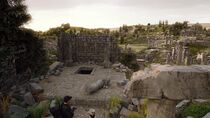 Quelques minutes plus tard, la petite équipe débarqua sur la planète et Eli fut stupéfait par l'étendue des ruines à la surface de ce monde. Ce dernier commença alors par explorer les tunnels souterrains à l'aide du Kino mais qui se révélèrent être un véritable labyrinthe. Il suggéra de descendre à l'intérieur de ces galeries dans l'espoir de trouver une source d'énergie assez puissante pour rentrer sur Terre. De plus, étant incapable de trouver la sortie avec le Kino, l'équipe fut contraint de descendre dans les tunnels pour le retrouver et récupérer ces enregistrements vidéo.