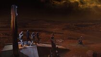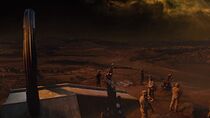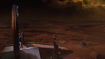 À peine arrivée sur ce monde inhabité, le lieutenant James fut surpris par la beauté du paysage et proposa au docteur Rush de se séparer en deux équipes, chacune d'entre elle étant équipée de plusieurs Kinos et d'une télécommande pour activer la porte. James souligna également le fait qu'il ne leur restait plus qu'une heure et demie avant que le Destinée ne repasse en VSL, et que cette option leur permettrait ainsi d'étendre leur recherche à beaucoup plus de mondes, augmentant ainsi leurs chances de retrouver l'équipe du lieutenant Scott.