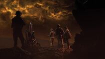 À noter que l'on peut apercevoir une grande nébuleuse de couleur jaune éclairer le ciel nocturne de ce monde étrange.