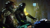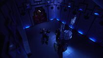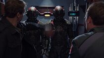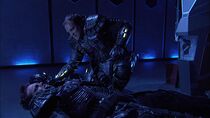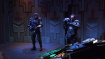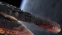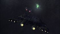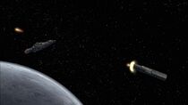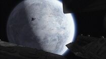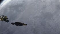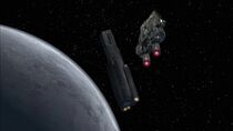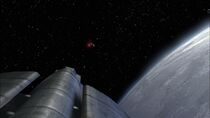 Au même moment, le vaisseau Voyageur piloté par Katana Labrea et le lieutenant-colonel Sheppard sortit de l'hyperespace en orbite de la planète glacée et affronta deux vaisseaux vanirs. Alors qu'un de deux vaisseaux ennemis fut détruit, un troisième parvint à s'enfuir en hyperespace. C'est alors que le Dédale arriva à son tour près de M6H-987 et commença à se diriger vers l'avant-poste Ancien. En effet, les armes du vaisseau terrien étant inopérantes, Todd avait programmé ce dernier pour qu'il s'écrase directement sur le dispositif Attero avant de se replier avec ses guerriers à l'intérieur d'une navette de transport wraith.