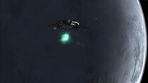 Alors que le Dédale entamait une entrée dans l'atmosphère à pleine vitesse, le lieutenant-colonel Sheppard utilisa le vaisseau Voyageur pour ouvrir une fenêtre d'hyperespace devant le Dédale dans le but de passer de l'autre côté de la planète. Une fois cette opération réussie, le dernier vaisseau vanir contourna la planète et attaqua à nouveau le vaisseau Voyageur, mais Sheppard parvint à le neutraliser.