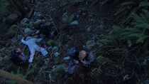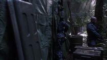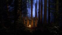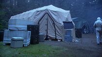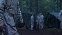 Un campement provisoire composé de plusieurs tentes fut installé par les Terriens au milieu d'une dense forêt de conifères et à proximité d'un cours d'eau et d'un ravin.