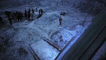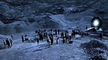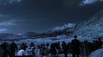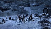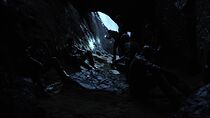Peu de temps après, le lieutenant James informa le colonel Young qu'elle et ses hommes avaient découvert un réseau de petites grottes à deux kilomètres de leur position derrière une petite crête et précisa que ces dernières pouvaient abriter l'ensemble des personnes exilées. Néanmoins, alors que les Terriens s'apprêtaient à se diriger vers ces cavernes, la porte des étoiles s'activa à nouveau et plusieurs Luciens, dont Varro et Koz, arrivèrent sur la planète. En effet, Dannic les envoya sur ce monde hostile en même temps que les Terriens en guise de condamnation pour avoir défié ouvertement son autorité à bord du Destinée. Alors que Young donna l'ordre au groupe de se mettre en marche, plusieurs éclairs d'une violence inouïe frappèrent le sol à quelques centaines de mètres des rescapés.