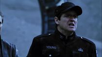 Ainsi, quelques minutes plus tard, la plupart des membres de l'équipage terrien, dont le colonel Young, furent contraints de traverser la porte des étoiles et débarquèrent à la surface de cette planète. Lors de leur arrivée sur ce monde à la surface dévastée, les Terriens remarquèrent qu'un orage se préparait à l'horizon et le colonel Young suggéra de trouver rapidement un abri avant que la tempête n'arrive.
