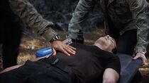 Peu de temps après, le docteur Rush revint auprès des membres de l'équipe d'exploration avec l'équipement médical et le traîneau inventé par Eli pour transporter le militaire inconscient. TJ essaya différents traitements pour combattre l'organisme, dont le venin Alien récupéré sur la Planète Jungle, l'alcool et l'acide chlorhydrique, mais aucun d'entre eux ne fonctionna. Alors qu'elle se résignait à amputer l'avant-bras du lieutenant Scott, elle se rendit compte que son sang était également contaminé par l'organisme. Refusant d'abandonner son ami, le sergent Greer retourna sur le Destinée afin de récupérer du matériel et des renforts militaires pour défendre les alentours de la porte des étoiles. Il espérait ainsi tenir les plantes serpents à l'écart de la porte, le temps que TJ parvienne à trouver un moyen de soigner le jeune militaire.