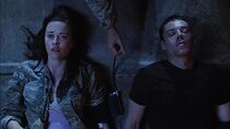 Tandis que ses compagnons furent occupés par les attaques des plantes serpents, Chloe décida de se faire piquer volontairement par l'une des créatures pour s'assurer de son immunité face à l'organisme alien. En effet, les Nakais ayant en partie transformé son ADN, Chloe était immunisée contre les spores des plantes serpents et demanda à TJ de transfuser son sang à celui de Scott pour le soigner. Quelques minutes plus tard, Chloe transmit son sang à Scott à l'aide d'une perfusion pendant que le docteur Rush et TJ traversaient la porte des étoiles. Le sergent Greer continua de les couvrir avec son lance-flammes, puis avec l'activation répétée de la porte pour repousser les assauts des créatures aliens.