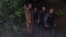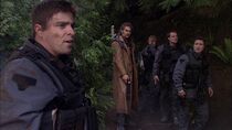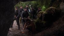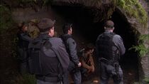 Une heure plus tard, une équipe composée de Teyla, Ronon, des docteurs McKay et Beckett, du major Lorne et deux autres Marines, Stevens et Walker, traversa la porte des étoiles et voyagea sur ce monde densément boisé à la recherche du nid principal des insectes ectoparasites. Après une heure de marche à travers la forêt, l'expédition découvrit l'entrée d'une grotte à deux kilomètres de la porte des étoiles au pied d'une chaîne de montagne. Ronon confirma une activité récente des insectes avec la présence d'excréments frais et l'équipe entra au sein de la grotte en s'équipant de lunettes de vision nocturne.