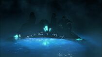 Néanmoins, la pression de l'eau exerçant une pression constante sur l'horizon des événements, l'équipe de Sheppard fut contrainte d'attendre dans une eau glaciale que la porte se désactive par elle-même au bout de 38 minutes avant de pouvoir monter à bord d'un Jumper. Le lieutenant-colonel et son équipe attendirent alors plus de 9 heures sur ce monde que le niveau de l'eau baisse suffisamment pour composer l'adresse d'Atlantis et traverser la porte des étoiles à pied en toute sécurité.