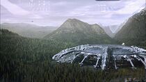 La porte des étoiles locale se trouve dans une clairière herbeuse à une demi-journée de marche de la base wraith. Cette dernière est située au pied de plusieurs montagnes et à proximité d'une rivière. Une vaste forêt de conifères entoure le complexe et semble s'étendre à perte de vue dans les montagnes.