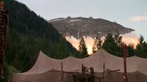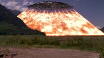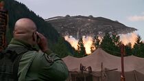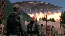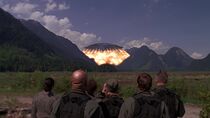 Plusieurs semaines plus tard, les membres de l'équipe SG-1 furent invités par Hedrazar et son peuple à célébrer leur installation sur leur nouvelle planète et voyagèrent à nouveau vers P5S-381 par la porte des étoiles. Toutefois, au cours des festivités, un des villageois appelé Caleb fit irruption dans le campement et prévint ses habitants, ainsi que l'équipe SG-1, de l'arrivée imminente d'un terrible cataclysme qui avait entièrement détruit son village. Arrivés près de la porte des étoiles, les membres de l'équipe terrienne découvrirent alors un gigantesque vaisseau extraterrestre de couleur noir déployant un immense rideau de feu sur tout l'horizon et anéantissant toute forme de vie sur son passage.