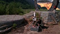 Située au bord d'un étang d'eau douce, la porte des étoiles est installée à proximité d'un village enkaran au sein d'une vallée densément boisée entourée par de hautes collines aux sommets enneigés. Bâti au milieu d'une clairière herbeuse, un campement rudimentaire dirigé par Hedrazar était composé de plusieurs tentes en toiles de couleur beige et alimenté par un générateur à naquadah.