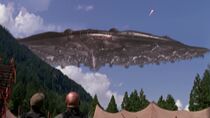 Peu de temps après cette découverte, le colonel O'Neill, le major Carter et le docteur Jackson revinrent au SGC par la porte des étoiles pour avertir le général Hammond de la situation tandis que Teal'c demeura avec le peuple des Enkarans pour les aider à évacuer leur monde. Le personnel du SGC envoya alors une sonde UAV pour étudier le vaisseau alien et prélever des échantillons de l'atmosphère de la planète après son passage. Alors que le major Carter parvint à déterminer que, d'après sa vitesse, le vaisseau devrait atteindre le village d'Hedrazar dans 26 heures, celle-ci découvrit que l'appareil alien déposait des micro-organismes à la surface de P5S-381 produisant de l'anhydride sulfureux à partir du sous-sol de la planète sur une étendue de plus de cent kilomètres derrière lui.