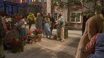 Arrivée au village, l'équipe de Sheppard fut accueillie chaleureusement par ses habitants et rencontra le chef du village, un certain Lucius Lavin. Après les avoir invités à festoyer en sa présence, Sheppard tenta de lui proposer un échange commercial, cependant, il s'avéra que Lucius et son peuple n'avaient que peu de choses à proposer en échange, hormis des potions médicinales. De retour sur Atlantis, Sheppard recommanda au docteur Weir d'envoyer le docteur Beckett pour examiner les potions de Lucius.