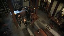 Lors de leur arrivée au sein de ce village de style pré-industriel, un habitant leur signala que les individus recherchés avaient pris des chambres à l'auberge mais qu'ils passaient beaucoup de temps à la taverne. Alors que Ronon partit inspecter l'auberge, Teyla se rendit à la taverne pour interroger le barman sur l'endroit où pourrait se trouver ces personnes. C'est alors qu'elle fut abordée par un homme inconnu puis attaquée par deux autres personnes. Néanmoins, au moment où Ronon arriva pour lui porter secours, celui-ci reconnut immédiatement ces trois compagnons d'armes satédiens appelés Tyre, Ara et Rakai.