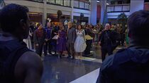 Quelques instants plus tard, une fois le calme revenu dans le hall de réception, Malay Lourdes, un agent du service de sécurité du Grand conseil, contacta les membres de l'équipe terrienne par radio depuis l'extérieur et les prévint que le musée était complètement encerclé par des forces de sécurité. Bien que le docteur Jackson tentait de le convaincre que lui et les autres membres de SG-1 n'étaient pas des rebelles, ces derniers lui conseillèrent de jouer le jeu le temps que le général Landry les recontacte dans environ cinq heures et de garder les personnes prises en otage afin d'éviter d'être tués par les forces d'intervention.