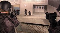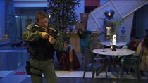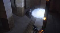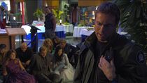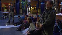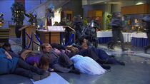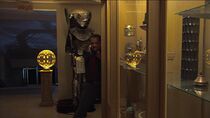 N'ayant aucune source d'énergie pour alimenter la porte des étoiles et composer manuellement l'adresse de la Terre, les membres de l'équipe décidèrent d'attendre patiemment le prochain rapport avec le général Landry en évitant d'être repérés par les habitants de ce monde. Néanmoins, c'est alors qu'un couple surprit les membres de l'équipe terrienne et donna l'alerte en les identifiant comme étant des rebelles. Un mouvement de panique se créa alors dans le hall de réception et le colonel Mitchell et Teal'c furent pris à partie par les gardes du musée. Néanmoins, au cours des échanges de tirs, l'un des gardes détruisit accidentellement une vitrine, ce qui déclencha le système de défense du musée et la fermeture complète de celui-ci, piégeant SG-1 et plusieurs personnes à l'intérieur du bâtiment.