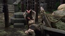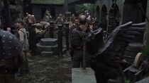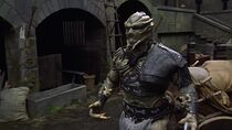 Le lendemain matin, le Unas possédé par un Goa'uld arriva au village médiéval et emmena les membres de SG-1 et Mary. Cependant, sur le chemin de la porte des étoiles, les membres de l'équipe et Mary tentèrent de s'échapper malgré les chaînes en plongeant dans un ravin, et s'enfuirent à travers la forêt poursuivis par le Unas. Au moment où celui-ci rattrapa SG-1, Simon vint à leur secours et tira plusieurs fois sur le Unas sur la lance de Teal'c à bout portant, lui infligeant de sérieuses blessures. Néanmoins, le Unas poursuit à son tour Simon dans la forêt jusqu'à ce qu'il rencontre le Canon et que le Goa'uld prenne possession du corps de ce dernier.