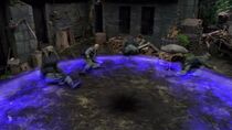 La porte des étoiles locale, appelée « cercle des ténèbres » par les habitants de ce monde, est installée au sommet d'une petite colline dominant une vallée densément boisée et entourée de hautes montagnes verdoyantes. Un chemin fréquemment emprunté part de la porte des étoiles et mène jusqu'au village médiéval dirigé par le Canon.