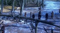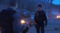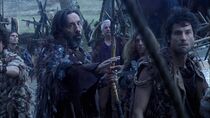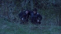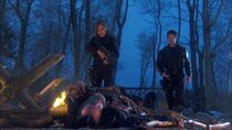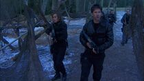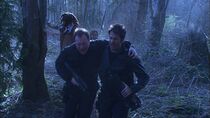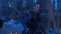 Durant leur fuite, Ronon et Teyla restèrent en arrière pour maintenir les villageois à distance pendant que le colonel Sheppard aidait le docteur McKay à courir jusqu'à la porte. Alors que McKay composait les coordonnées d'Atlantis, Sheppard retourna aider Teyla et Ronon dans la forêt. Néanmoins, tous trois furent neutralisés à l'aide de fléchettes tranquillisantes et seul McKay parvint à s'échapper à travers l'horizon des événements. Sheppard, Teyla et Ronon furent ensuite capturés par les villageois et emprisonnés dans une cellule rudimentaire à l'écart du campement.