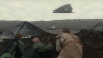 Alors que trois vaisseaux de classe Ha'tak ouvraient le feu sur la base terrienne dès leur sortie de l'hyperespace, le transporteur de troupes se dirigea vers la surface d'Icare, escorté par un escadron de planeurs de la mort. Le colonel Telford et plusieurs F-302 tentèrent alors de l'intercepter en plein vol, mais ne purent empêcher que celui-ci se pose près de la base Icare.
