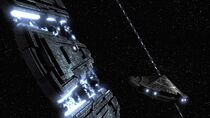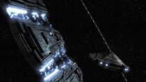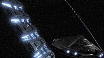 Quelque temps plus tard, suite à l'échec des deux premières tentatives d'activation de la superporte ori, Teal'c repéra l'arrivée imminente d'un vaisseau-mère ennemi grâce aux détecteurs longue portée de son Al'kesh et informa les membres de l'équipe SG-1 que sa présence ainsi que celle de la porte lactéenne sera compromise dans quelques minutes. Le colonel Carter suggéra alors au Jaffa d'étendre son système de camouflage optique afin de cacher la porte des étoiles puis d'éteindre les autres systèmes non essentiels pour éviter d'être repéré.