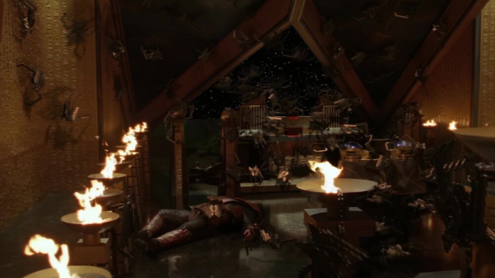 Une fois sortie de la chromosphère de l'étoile au bout d'une dizaine d'heures, l'équipe put découvrir avec surprise que seul le vaisseau mère d'Apophis avait survécu à la bataille, mais qu'il n'y avait plus une seule trace de vie à son bord.