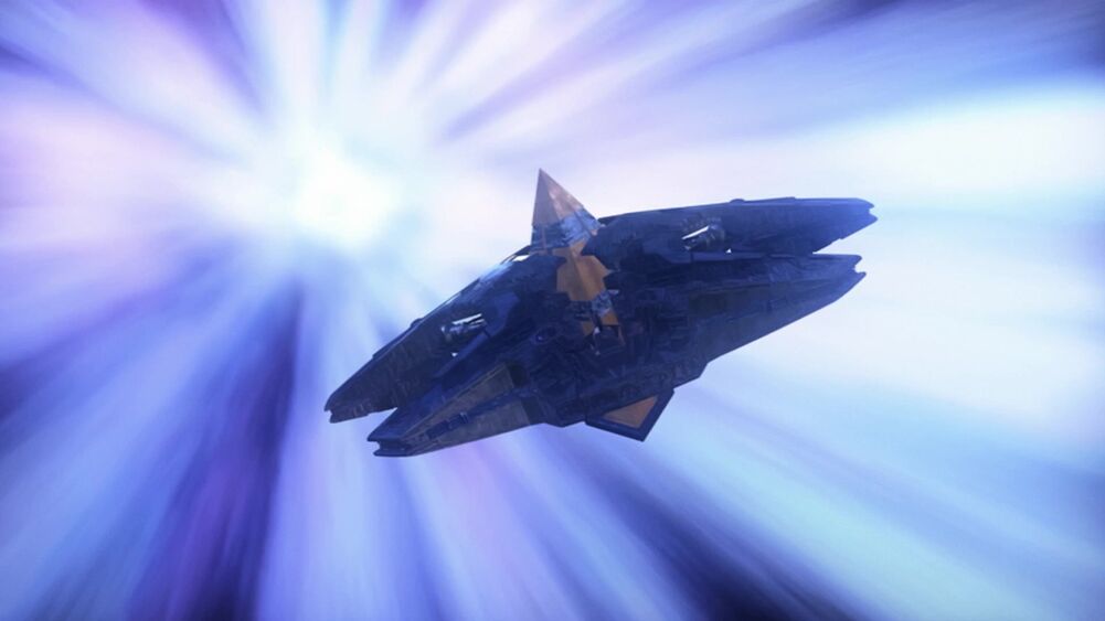 Alors que les deux vaisseaux allaient s'affronter, un vaisseau extraterrestre inconnu s'interposa. Apophis lança l'attaque contre ce nouveau venu, permettant à SG-1 de prendre la fuite et de se réfugier dans la chromosphère d'une géante bleue toute proche. Ce stratagème permit à l'équipe de se cacher du Goa'uld Apophis et de leur mystérieux agresseur, le temps de réparer les boucliers du vaisseau Ha'tak.