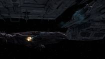 Arrivés sur place, Sheppard et son équipe partirent en éclaireur à bord d'un Jumper occulté. Après que McKay ait détecté d'impressionnantes émissions d'énergie en provenance du vaisseau, ce dernier tira sur le Jumper, mais manqua sa cible. Cependant, Sheppard comprit que le Jumper avait été repéré et fit demi-tour. Celui-ci subit alors des dommages à cause d'un seul tir de la ruche mais le Dédale s'interposa à temps, bloquant les tirs. Le 304 riposta avec le rayon à plasma, mais ne causa que des dégâts minimes à la ruche modifiée.