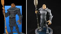 Cette statuette d'environ23 cm représente Teal'c en armure jaffa créé par Caitin Ashford dans une version animée sur socle décor Stargate. Il s'agit d'un modèle en résine et peint à la main en édition limitée à 1000 exemplaires numérotés.